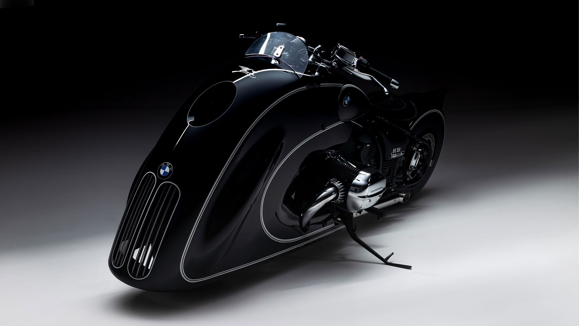 Многое в R 18, по мнению Дика, настолько логично и продумано, что было бы стыдно даже трогать это. Поэтому сократить число деталей мотоцикла до минимума и разобрать его до двигателя никогда не получалось. Поэтому работа состояла в том, чтобы украсить это произведение искусства и подчеркнуть его душу. Вдохновение пришло из одного из его любимых десятилетий: образцом для впечатляющей панели послужила решетка радиатора родстера BMW 1930-х годов. Деталь ручной работы подчеркивает и дополняет линии R 18 и находится всего в 15 см от земли, составляя единое целое с мотоциклом.