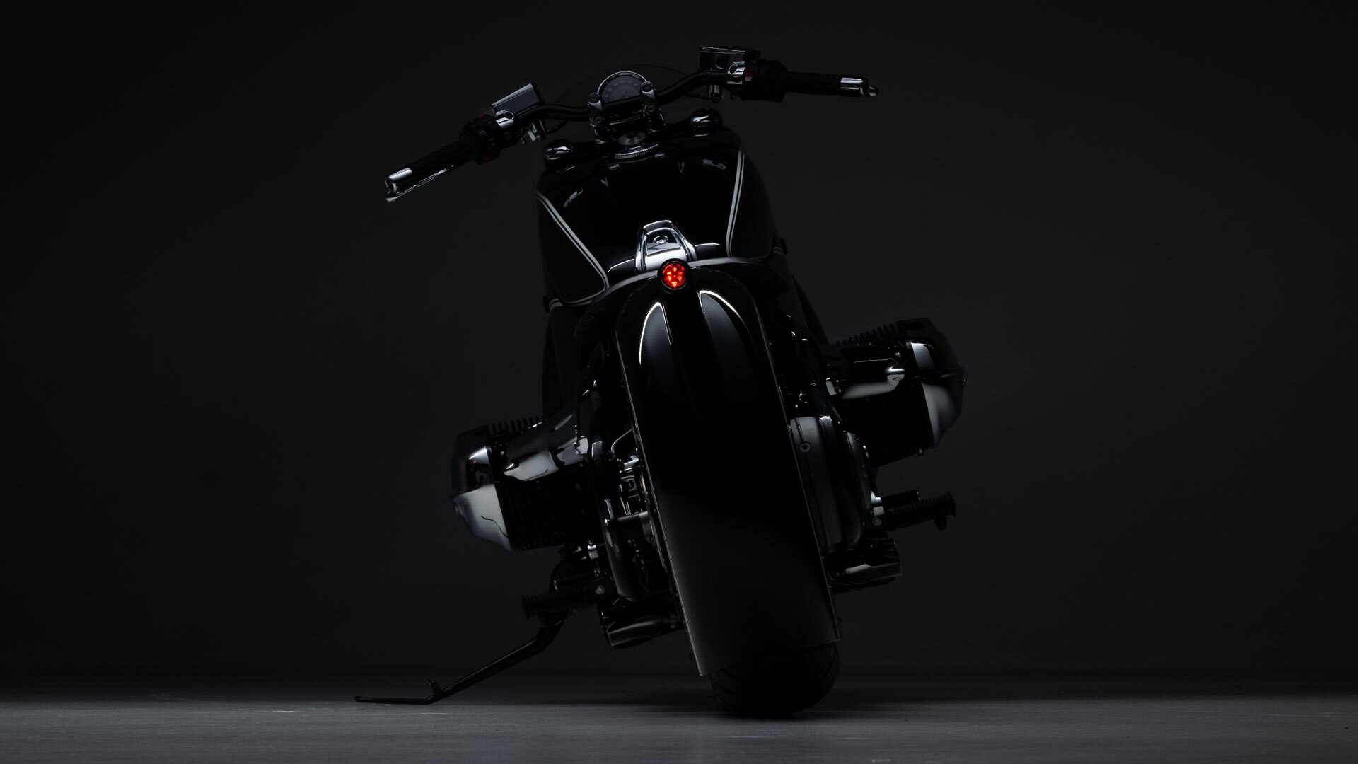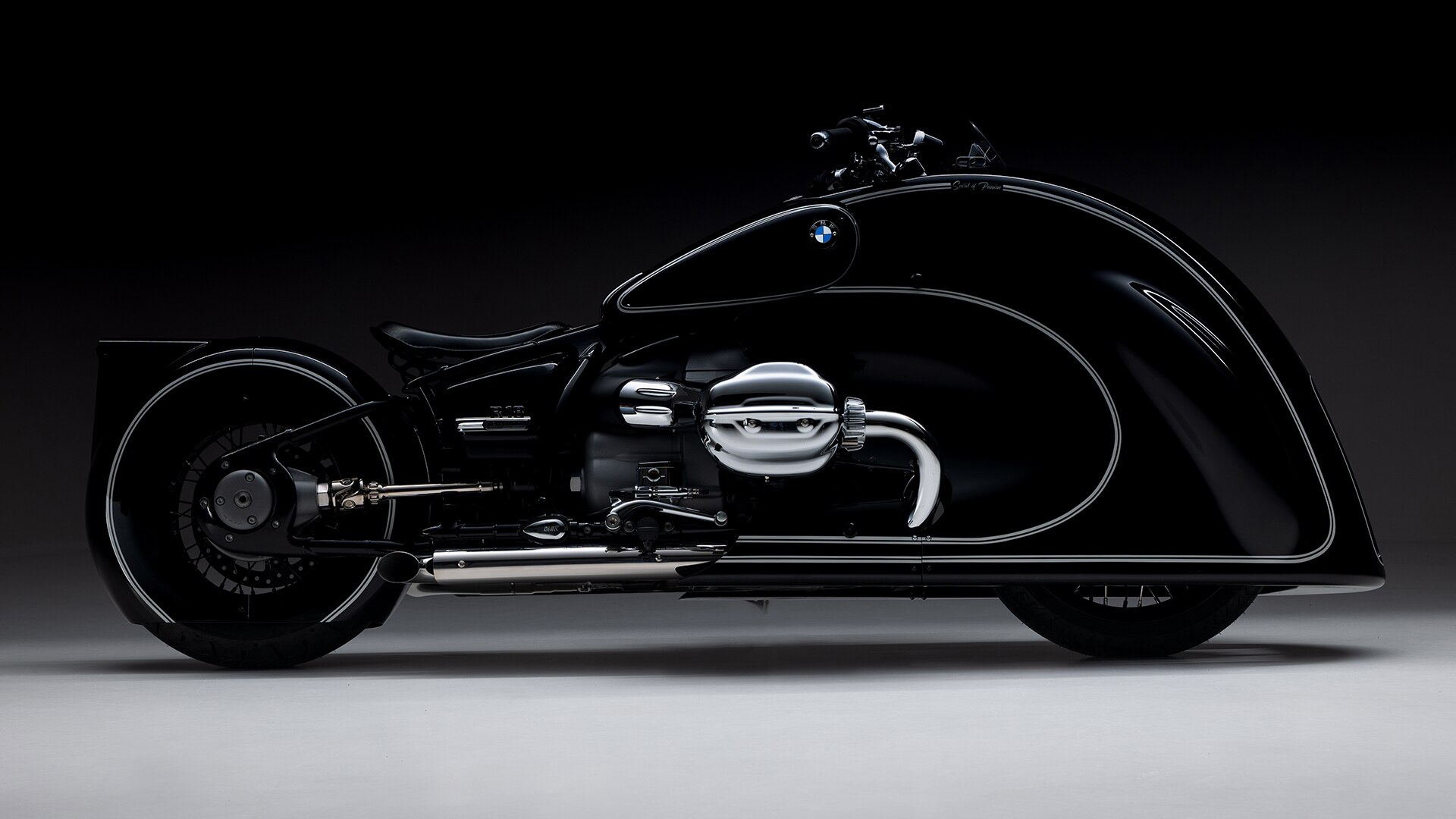 Обтекатель плотно прилегает к баку с зазором всего 8 мм, а его классическая окраска с фирменной для BMW двойной цировкой органично продолжается на остальной мотоцикл. Шарнирный механизм крепления заднего крыла позволяет без проблем заменить колеса. Точно расположенные отверстия позволяют осматривать дисковые тормоза и двигатель. Здесь хорошо видно, что собой представляет Spirit of Passion: настоящий шедевр, созданный с максимальным уважением к конструкции R 18.